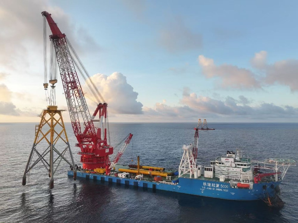 2024年12月,由中国铁建港航局投资、江苏海新船务重工有限公司建造的5000吨自航式全回转起重船“铁建起重5000”在江苏南通正式交付?!?/p>